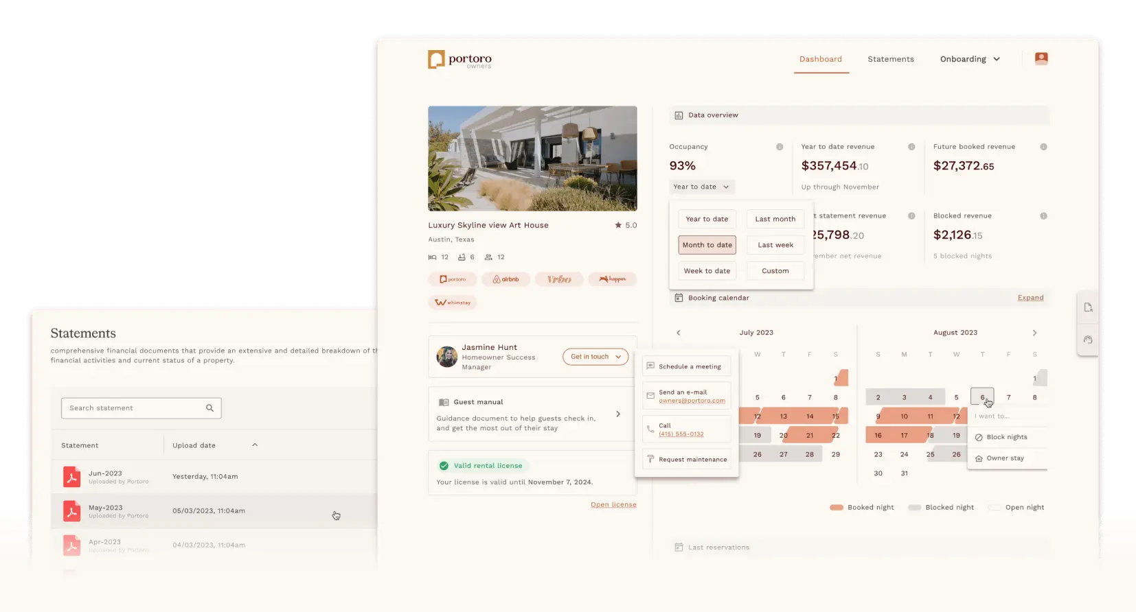 We create customized revenue plans, implement bespoke property management processes, and cultivate unique experiences based on the novel features of your particular home. Our local teams are attentive, and backed by 24/7 support from headquarters.